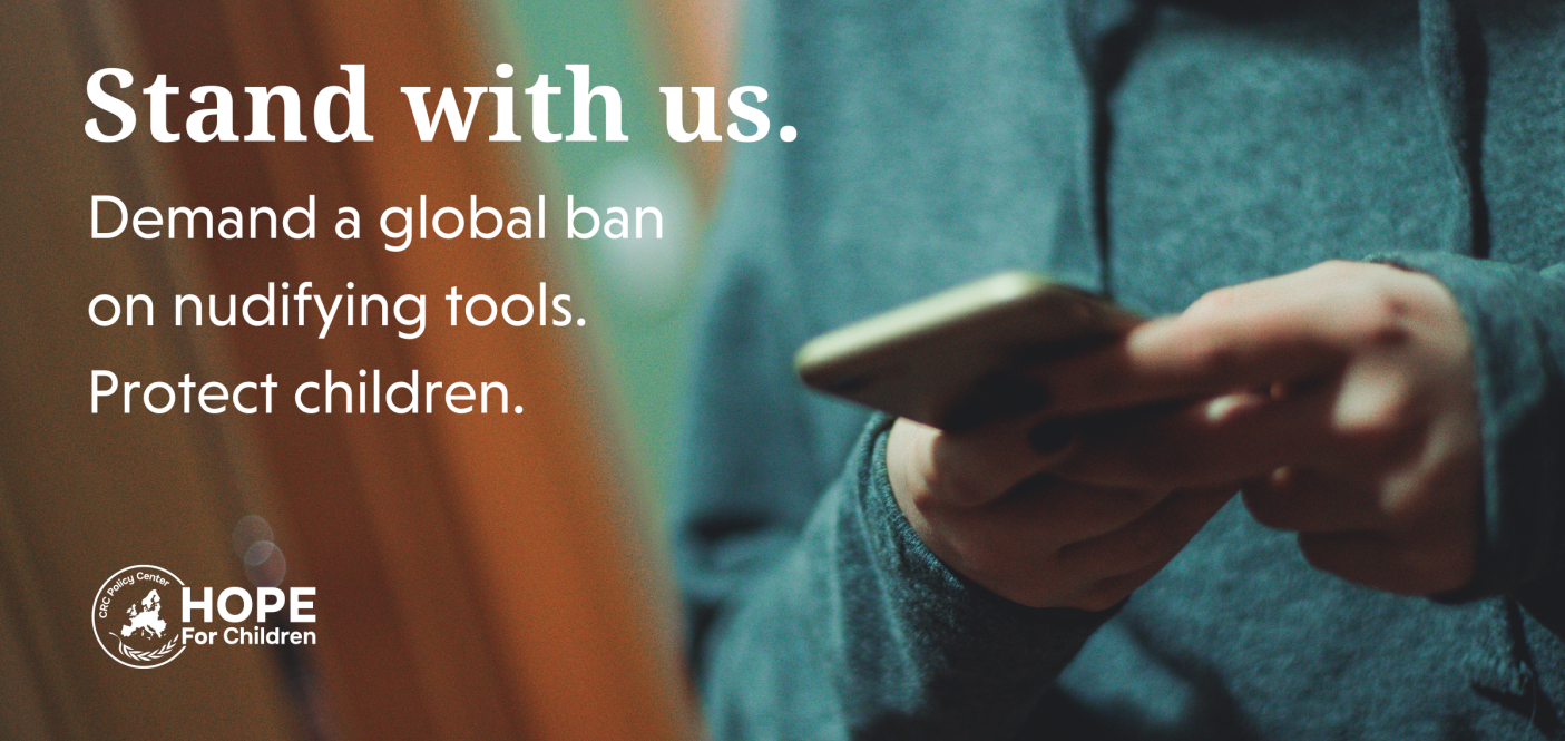 Σήμερα, στην Ημέρα Ασφαλούς Διαδικτύου, το “Hope For Children” CRC Policy Center στέκεται μαζί με πάνω από 100 οργανισμούς, θεσμούς και άτομα παγκοσμίως, απαιτώντας άμεση δράση ενάντια στις εφαρμογέςαπογύμνωσης (nudifying tools) – τεχνολογίες που δημιουργούν μη συναινετικές γυμνές ή καταχρηστικές εικόνες, στοχεύοντας δυσανάλογα παιδιά και γυναίκες.