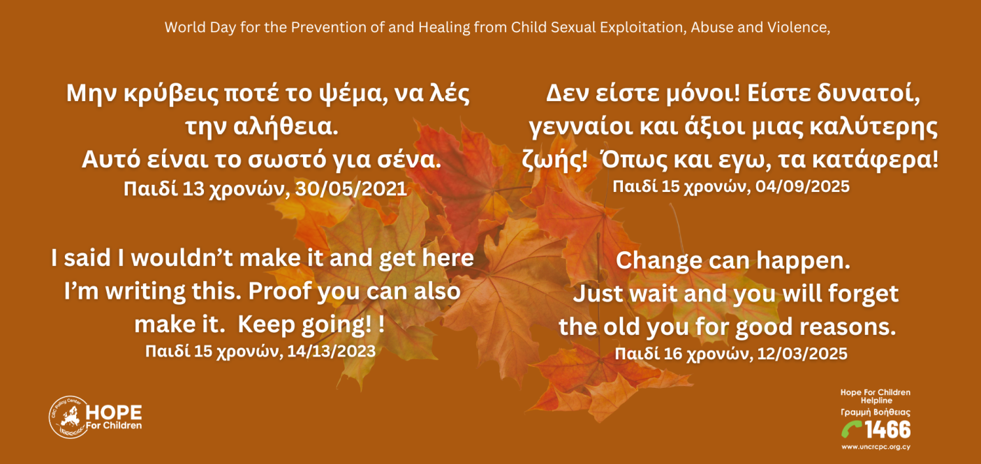 Το “Hope For Children” CRC Policy Center προωθεί την Ημέρα για τη Προστασία των Παιδιών ενάντια στη Σεξουαλική Εκμετάλλευση και Σεξουαλική Κακοποίηση υιοθετώντας και αναδεικνύοντας τις κατευθυντήριες γραμμές του Συμβουλίου της Ευρώπης, που φέτος εστιάζουν στην ανάγκη για πολιτικές βασισμένες σε αξιόπιστα, ολοκληρωμένα και συστηματικά δεδομένα σχετικά με τη σεξουαλική εκμετάλλευση και κακοποίηση παιδιών.